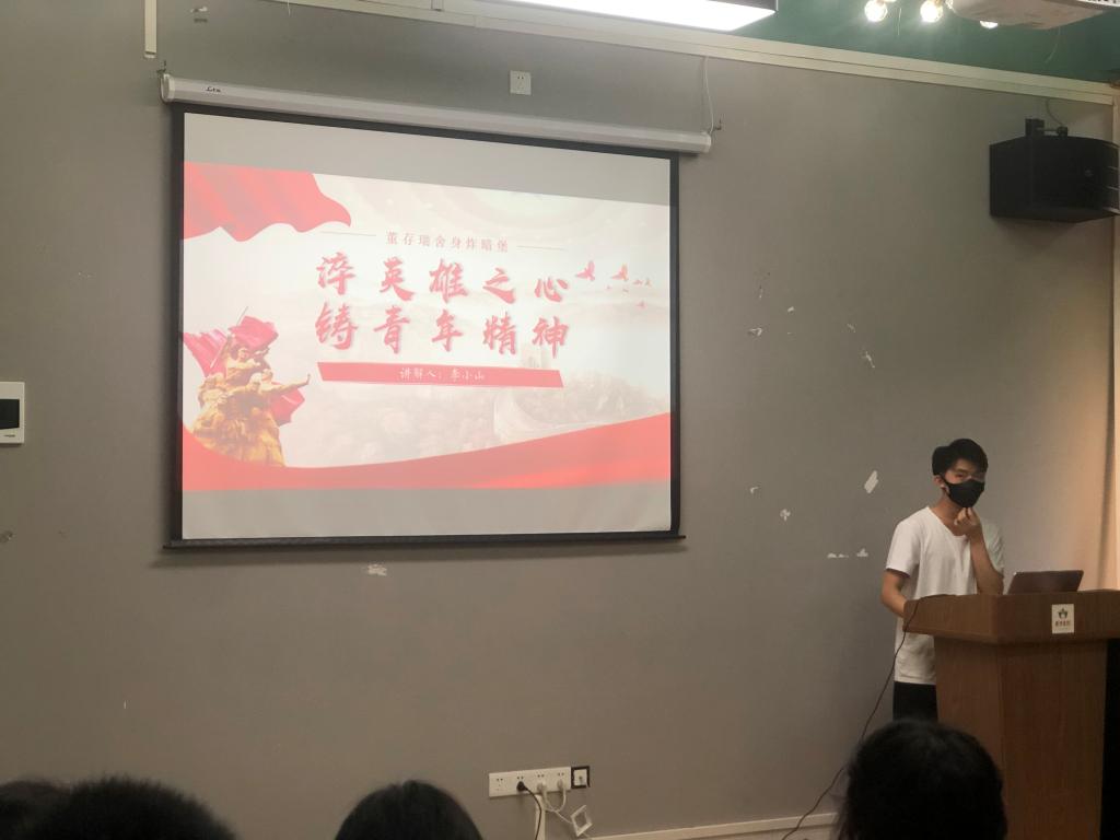 一寸山河一寸血,一抔热土一抔魂。伟大事迹感染人心、洗涤人心,在场同学无不为之动容,先后分享起自己所了解的英雄故事。罗迁同学率先分享了抗日民族英雄——“铁血将军”杨靖宇的故事。他谈到:“杨靖宇在其它战友都牺牲的情况之下,继续坚持战斗。最后,被一百多名敌人包围时,他仍左右开弓,打死打伤20多名敌人。他把最后一颗子弹留给了自己,牺牲时,年仅35岁。杨靖宇死后,经日军解剖,发现他的胃里竟全是野草和棉絮,没有一粒粮食。”杨靖宇将军的事迹震撼人心,催人泪下,不少同学湿润了眼眶,忍不住对“铁血将军”的由衷敬佩。接着同学们又依次分享了孙中山、贺英、董存瑞、黄继光等英雄的故事,并对新时代青年如何学习英雄事迹,传承弘扬革命精神发表了自己的看法。同学们的分享感情真挚、内容充实,赢得了现场的阵阵掌声。