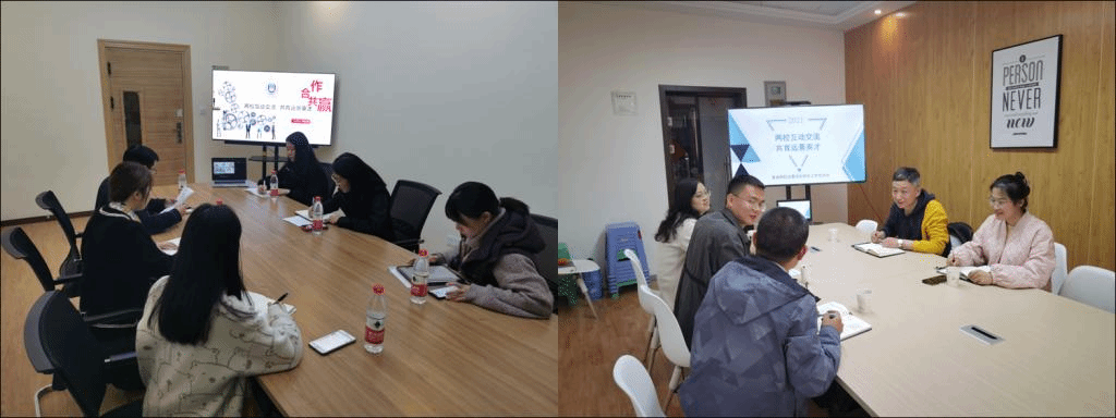 在介绍完学院重点工作以后,两院就目前工作中遇到的问题进行了讨论,针对导师如何参与到完满教育活动中,晋中远景学院有着丰富的经验,从书院活动中促进导师的联动,有效带动了导师活动的开展;在挖掘自身的故事中,李军副院长提到在学校讲好“完满故事”的大环境中我们要挖掘自身内涵,围绕“菩提故事”、“右岸故事”讲好我们自己的故事;邓瑞强副院长提到在学生参与完满教育活动中要利用平台与项目的支撑,挖掘有内涵与意义的完满教育活动,对部分板块的活动进行精简,提升学生参与活动的教育作用。在讨论中大家提到我们应当在以后的工作中有更多思想上的碰撞、活动中的融合、项目上的共建,提出了可以在宣传工作、线上交流、互访交流等方面进一步加强合作,最后确定了近期两院共同打造远景学院院歌原创制作项目、完满教育学生骨干互换培养项目、校园开放日交流互访项目的合作内容,希望通过项目的共同开发,学生能够积极参与其中,提升两院学生的交流与合作的同时也能够增强学生的自主参与能力。