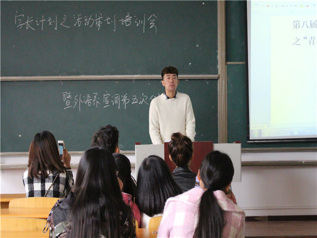 11月16日中午12时,外语系团总支宣传调研部覃永添学长对宣传调研部全体干事进行了关于策划书的培训。在大学生活中,每个大学生都应学会策划一场活动,因此写策划书是我们都应该学会的一项基本技能。策划书是对某个未来的活动或者事件进行策划,并展现给读者的文本。策划书可以为整个活动提供有力的指导,并能找到活动的不足之处。