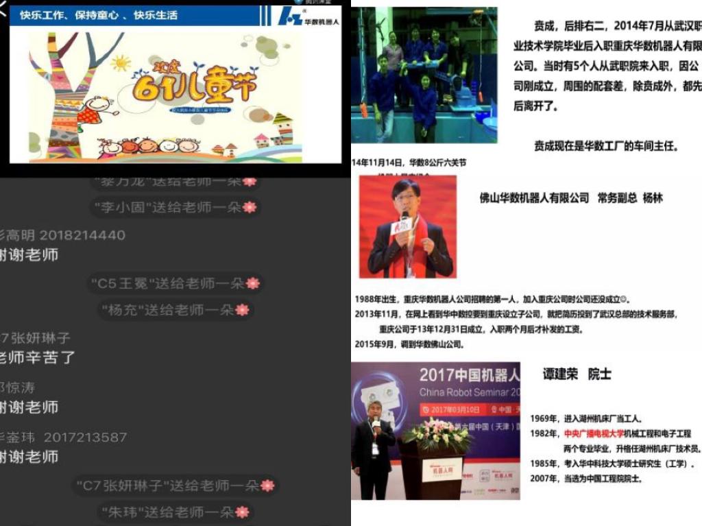 随后,杨海滨总经理以华数工厂车间主任贲成、佛山华数机器人有限公司常务副总杨林以及谭建荣院士为例,告诉大家机会是留给有准备的人,引导大家调整好心态,积极面对即将到来的就业挑战。同时以华数机器人有限公司今年的招聘简章为例与同学交流互动,帮助同学们树立清晰的就业认知,促进同学们积极就业。