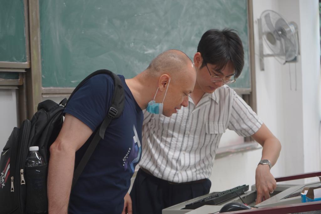 随后同学们带领Julio老师去到了他所任教的德国工程学院,在李晓锋老师的介绍下,Julio熟悉了教学与办公环境,同时还学习了教室多媒体的使用,德语教研室的老师们也对Julio的到来表达了欢迎,并期待之后的合作。