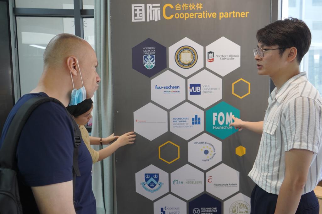 我校作为全国民办 本科高校中唯一一所拥有两项教育部批准的本科中外合作办学项目的大学,致力于培养具有国际视野、跨文化交流能力和较强专业技能的高级复合型人才,聚力打造国际化育人基地。多年来,我校聘请了百余名来自世界各地的高水平外籍教师,助力移通推进教育国际化事业的进程。近期我校成功引进了一名教学经验丰富,硕士毕业于德国名校-汉堡大学的外籍教师Julio,为让外教尽快熟悉校园环境,了解移通的校园文化,适应在移通的工作与生活,6月15日上午,Julio老师在大学生国际交流协会部分同学的带领下,开启了一场夏日移通校园行。