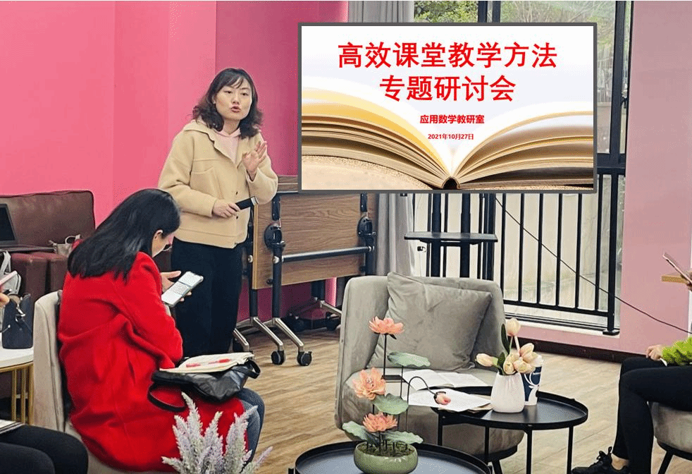 为了推进课堂教学模式改革,促进教师专业成长,提升学生核心素养,10月27日下午,数理教学部应用数学教研室全体教师在爱莲书院艺术交流室开展高效课堂教学方法专题研讨会。