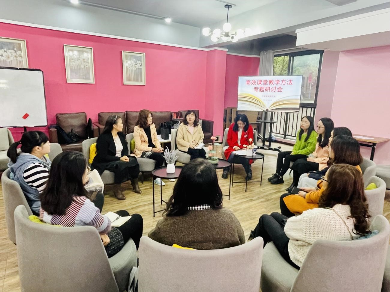 活动伊始,蒋观敏主任强调,打造高效课堂教学、提高教学质量是每个教育工作者一直追求的目标。蒋老师结合自身经验以及大量教学实例,从学生的心理角度出发带领大家探讨“加分制”与“减分制”的区别,同时为大家分享“课堂提问”的小策略。