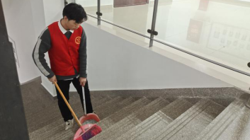 处理完一楼的碎玻璃后,成员们跟随图管会工作人员的步伐有序进入电梯。这次自习室团超活动的内容分为理自习室部分散乱桌椅,打扫自习室的卫生和维持自习室的秩序三个板块,成员们各司其职,安排有序。