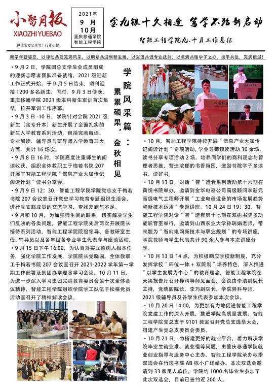 新学年新姿态,智能工程学院以律动共建完满风采,以朋辈共迎崭新发展,以交流共促专业技能,以点滴共暖学子之心,携手共进,完满相迎!