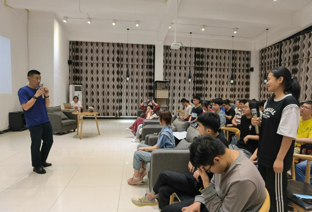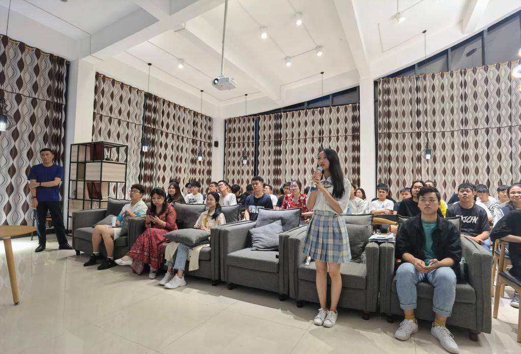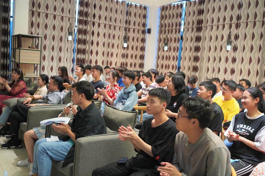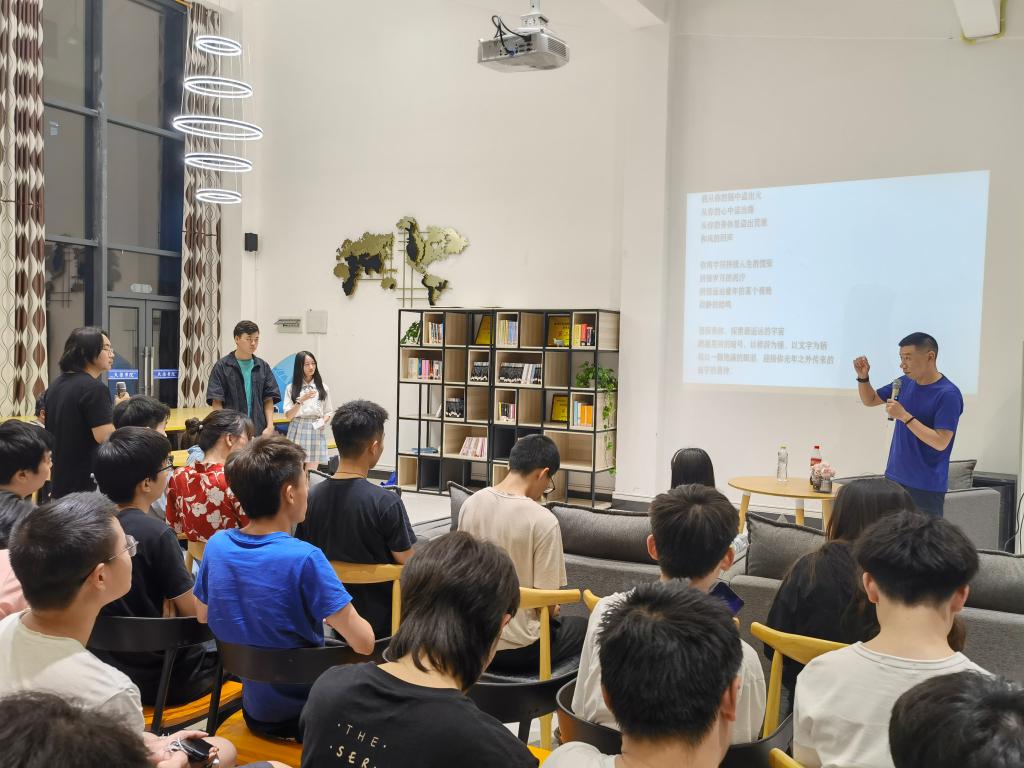 张林老师从“我的产品思维与作品思维的焦虑”深入了克拉考尔的思考。他说自己也曾经有过对于音乐的痴狂与热爱,立志于成为一名优秀的音乐制作人。后来走进文学,遇见电影,成为作者、编剧……他用足够丰富的人生阅历来吸引同学们的眼球,大家听得入了迷。他把自己的经历分为几个阶段,每个阶段都让他对于理想产生不一样的追求。但他步步先前,步步靠近,曾经的努力都让他成就了现在的自己,闪闪发光,令人瞩目。