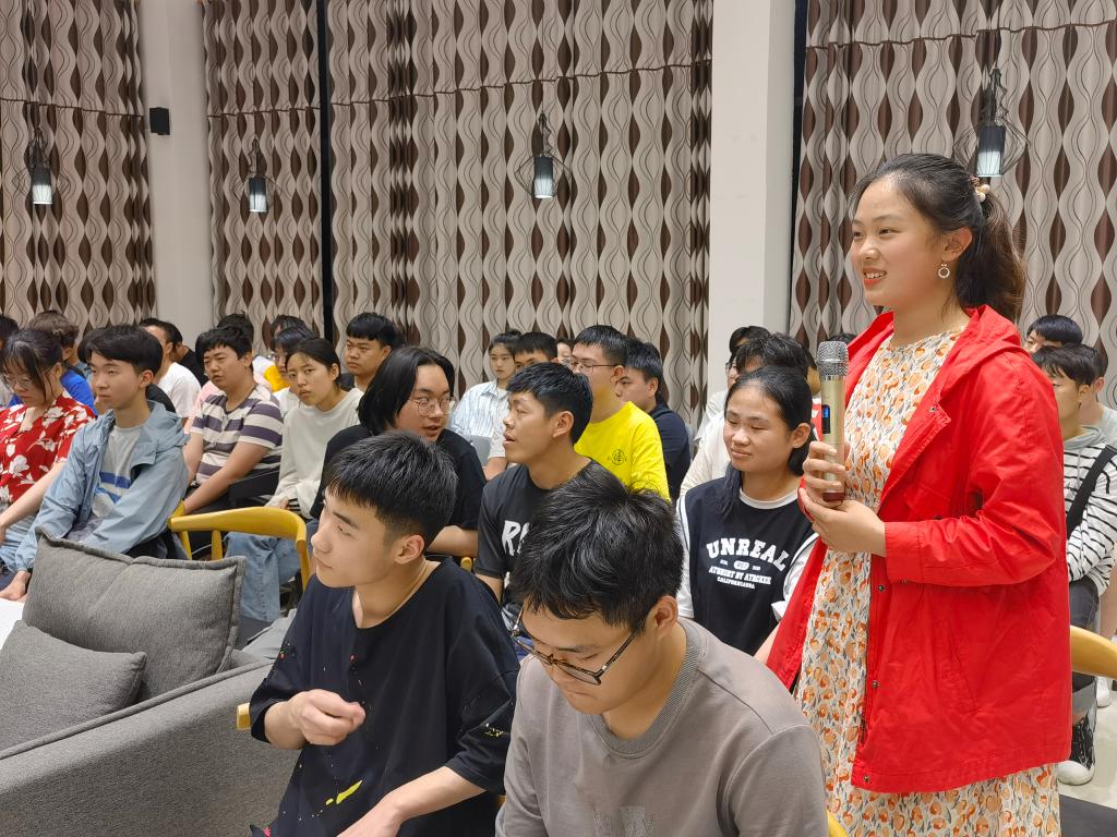 在交流互动环节中,同学们向张林老师提了许多问题:你是如何转换职业身份的?在现在碎片化的时代,怎样高效地去看一本书?……这些问题体现了同学们的思考以及对张老师的关注。张林老师显得从容不迫,有条不紊地一一作答。