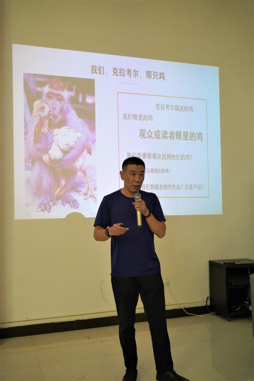 一开始,张林老师引入了这样一个片段:著名电影学家克拉考尔曾在《电影的本性》中写了这么一段故事,一位纪录片导演做了一个试验:他把自己拍摄的一部记录都市风光和现代人文的纪录片,放给从未接触过电影电视的原始部落的人群观看,想了解一下他们在观看过后会有什么样的反应。结果影片放映完之后,反应完全出乎他的意料——这些土著热情洋溢地在谈论一只鸡,而非电影主要想表现的内容。克拉考尔思考:其实这只“鸡”代表的是观众想要看见的作品。