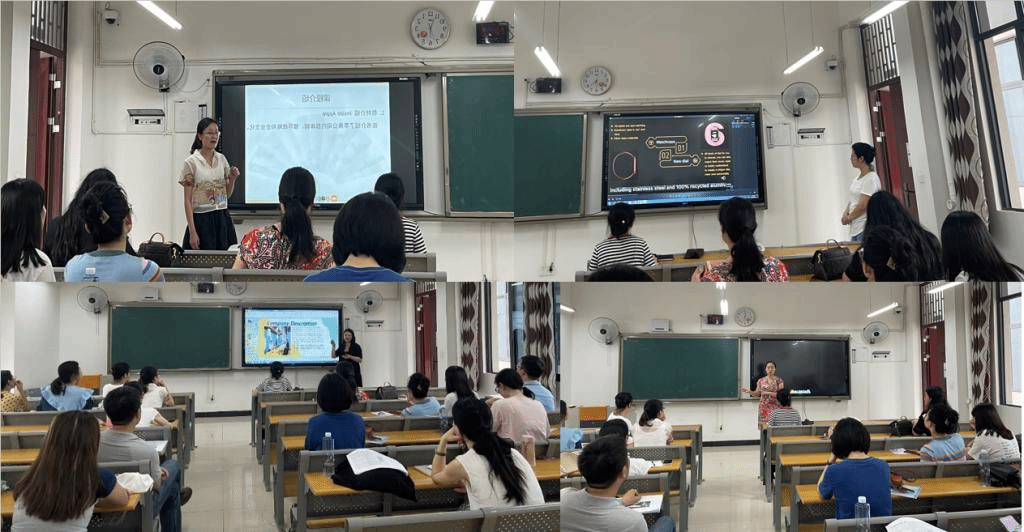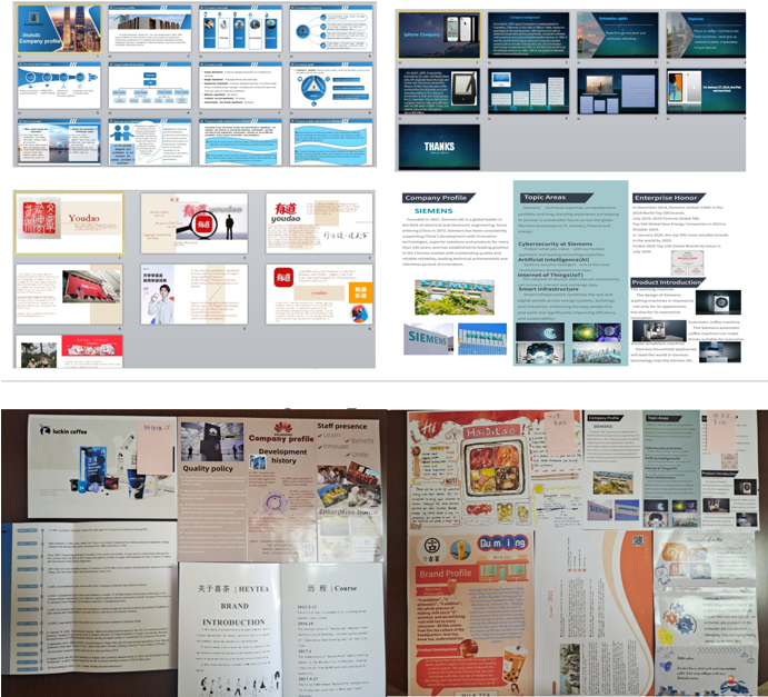 杨沁霏老师谈到单纯的翻译以及单词等作业会让学生觉得非常无聊,如果给予学生更多的话语权,允许他们在自己的作业中加入图片、动画、视频等,学生会更加地投入,老师也会发现学生更多的艺术才能以及创造力。此外,杨沁霏课堂教学灵活,引导学生积极参与,除了完成基本课程任务之外,学生进行集体演讲、模拟商务访谈、制作公司手册以及产品发布会,学生有了自主权,课堂任务也随之焕发光彩。这样的课程设计既锻炼了学生的英语语言能力,还增加了学生的商科知识储备。