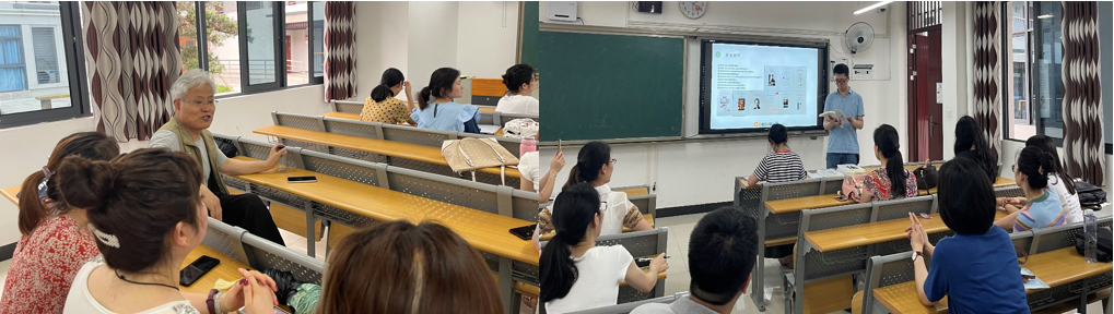 然后,杨加伟老师作为导学手册编写教师代表分享了编撰经验和感想。杨老师从编和用两方面对导学手册进行了简单的说明,指出导学手本一定要结合课本使用,建议后期导学手本可以加入课堂任务。此外,席仲恩教授指出《信息产业大咖传记阅读》的核心在于阅读,在教学过程中教师一定不能脱离阅读这一核心,句子分享则是检验学生是否阅读的有效办法之一。杨老师和席教授的分享得到了在座老师的一致认同。