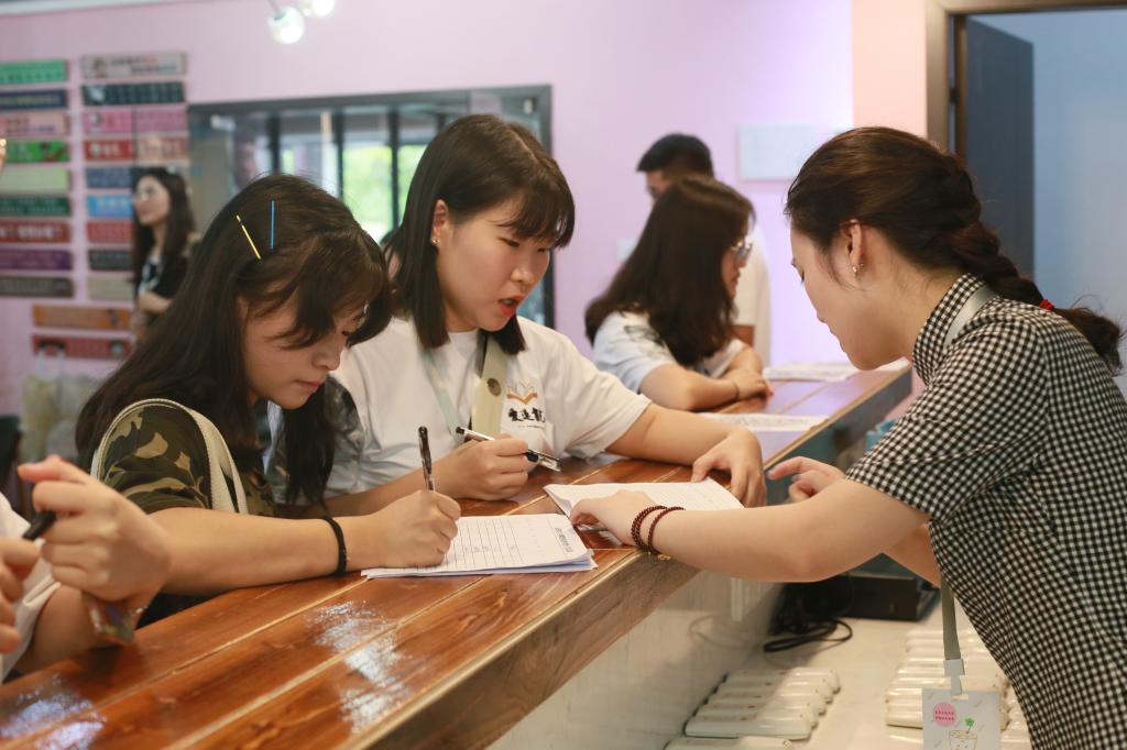 天渠书院2019级新生由16名土家族,1名蒙古族和1名满族,和354名汉族学生共372人组成。新一届小萌新们来自五湖四海,北至内蒙古南达广西,在这个夏天齐聚在热辣的重庆,汇聚于天渠书院。副主任祝玮老师、2019级新生辅导员纪治阳老师、谭雯老师,三届一任全体主席干部和2019级见习班主任都在现场耐心细致地回答新生和家长的问题初到校园,小萌新们或许还有些许迷茫,但迎新工作者热情周到的服务很快消除了她们初来乍到的陌生感,正如我们的标语一样“Every person都是外语系的Portion”,每个人都是外语系的一份子。