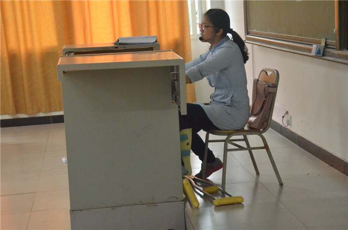 9月25日下午,我们在5101教室见到了拄着拐杖上课的管理工程系徐桂霄老师。上个月她右腿严重受伤,行动不便,但她依然坚持站在三尺讲台。
