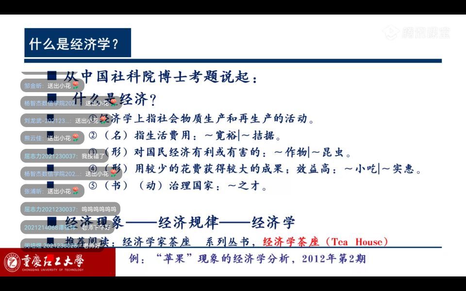 2022年5月25日下午15:00,荷悦书院群名誉院长邱冬阳教授通过“云端”连线,以“商科入门--经济发展浅析”为主题,向同学们讲授了经济学含义、经济现象以及经济规律三个方面的内容,并通过分享经典西方经济学的定义,让同学们了解到经济分析应从宏观微观、供给需求、市场政府等方面着手。