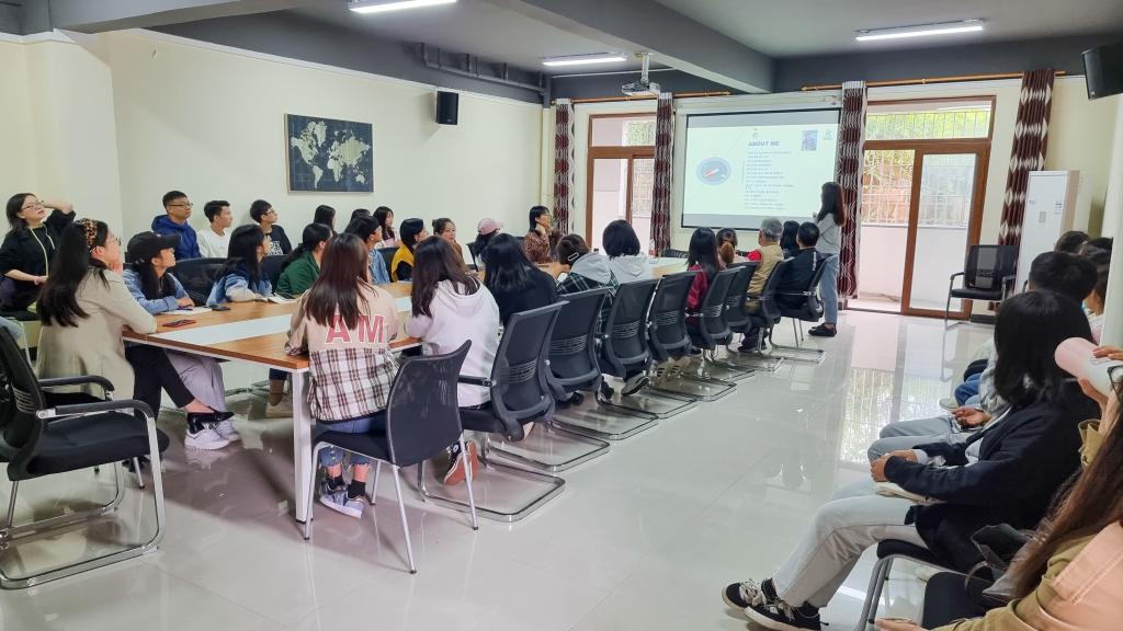 10月13日下午14:30,外国语学院英语专业教研室与钓鱼城科幻学院联合举办的科幻融合专题讲座系列之同声传译在荷悦会议室进行。本次讲座由外国语学院英语教研室主任卢镜囡老师主持,钓鱼城科幻学院教师代表、外国语学院英语专业教研室全体教师以及英语专业学生代表与会。
