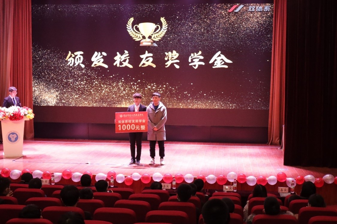 视频结束后,双体系校友会理事江知航老师为晟楠一部颁发双体系校友奖学金。这份奖励是前辈的鼓励与嘉奖,也是双体对他们的认可和肯定。