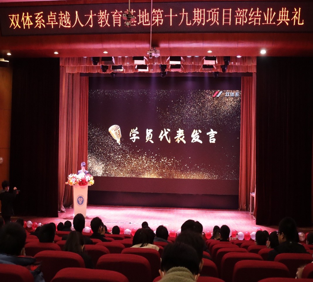 双体系卓越人才教育基地第十九期项目部结业典礼于2021年1月4日下午16点30分在下里巴人剧场举行。莅临本次活动的领导及嘉宾有:重庆移通学院校长张德民教授,校长助理周伟老师,双体系主任、就创中心主任陈仲华老师,双体系校友会理事江知航老师,以及双体系各职场、技术老师们。