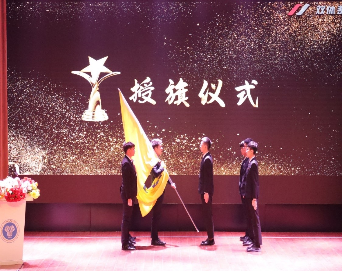 十九期的学员代表紧握双体的旗帜,迈着整齐有力的步伐向二十期学员代表走去,从二十期学员接过双体旗帜的那一刻起,意味着双体精神,薪火相传。