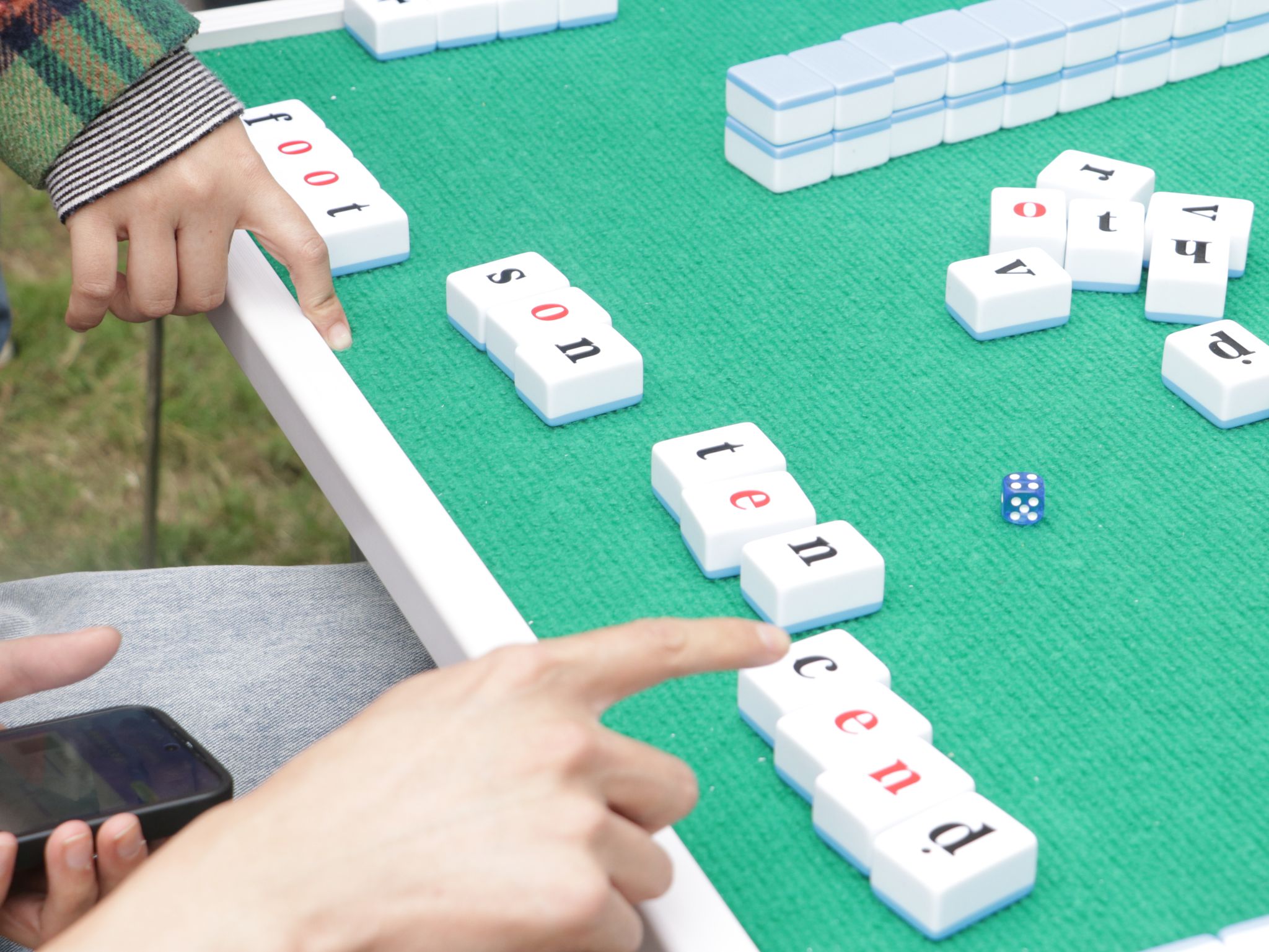 与普通麻将玩法不同,本次比赛中英语麻将的每张牌面均为英文单词,通过108张由26个英语字母和白板组成的牌面,结合麻将中原有的14张手牌、轮番出牌、吃牌胡牌的方式,率先组合好1-7个完整单词或句子即可获胜。