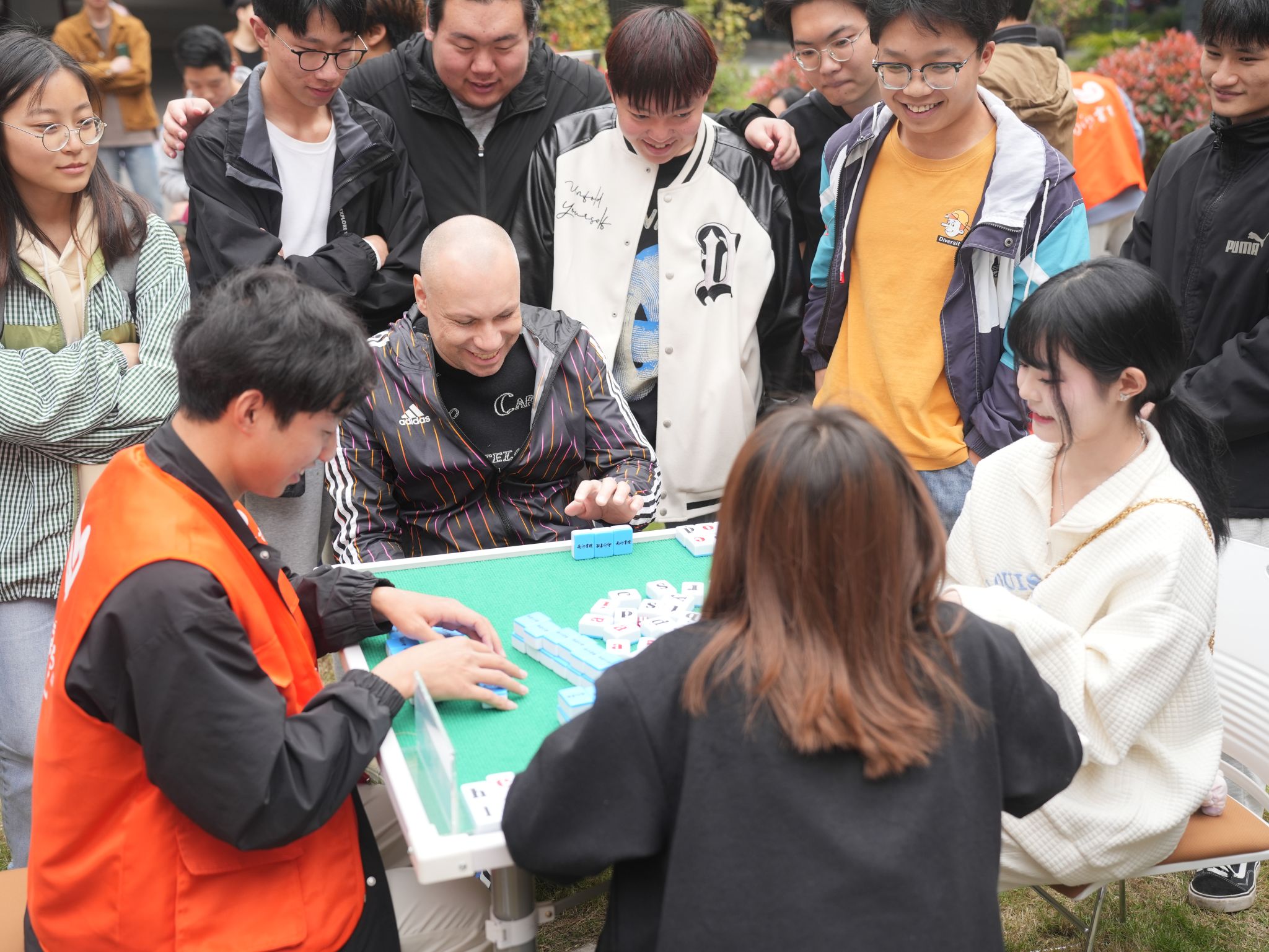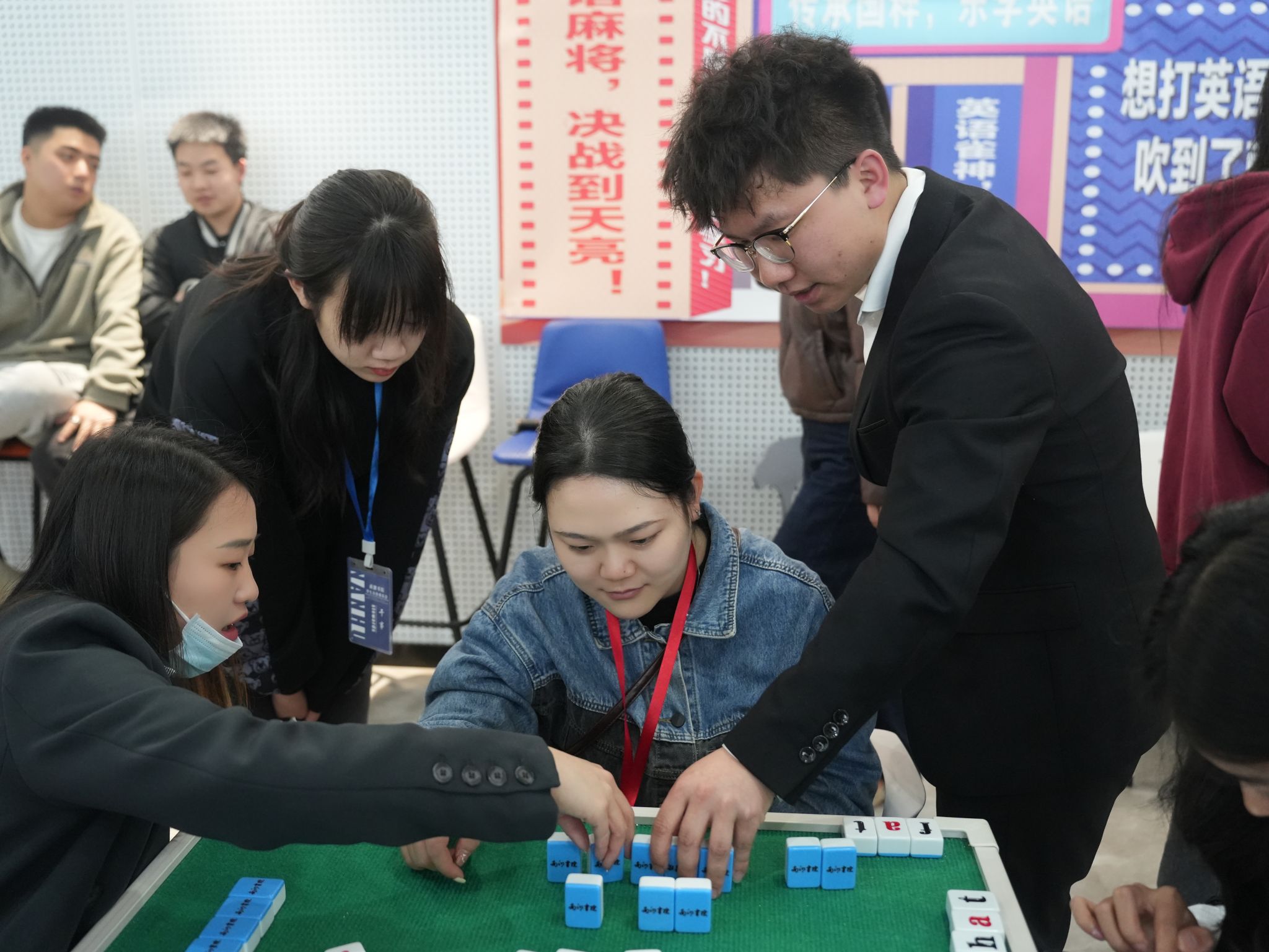 当“吃碰杠花胡”遇上“ABCDE”,传统“国粹”和国际文化碰撞出了新颖有趣的火花,英语麻将吸引了众多同学的目光,未参赛的师生也驻足围观、了解体验。
