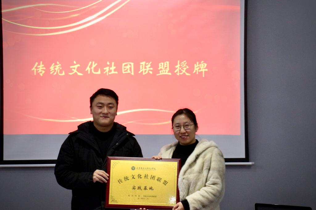 随后,团委蔡星宇老师和北山书院冯元老师分别代表双方进行了授牌仪式,蔡星宇老师代表传统文化社团联盟将“传统文化社团联盟实践基地”牌匾授予了北山书院。北山书院与传统文化社团联盟已正式挂牌实践基地,是合作、更是资源的整合,也象征着传统文化阵地的进一步完善。