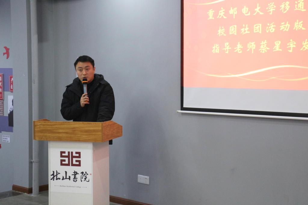 2020年12月30日,重庆邮电大学移通学院传统文化社团联盟正式挂牌北山书院,团委社团活动版块蔡星宇老师、黄杜娟老师,北山书院冯元老师、卢柯毓老师,校外相关嘉宾以及传统文化社团联盟的理事单位负责人出席仪式。前期,社团联盟主要和北山开展特色活动上的联动合作,经过一年的磨合,北山书院与社团联盟进一步深化合作,拟定《关于传统文化社团联盟挂牌北山书院实践基地方案》,将“联动·提升·巩固”进一步落实到位,把“深度延伸”贯彻到底。