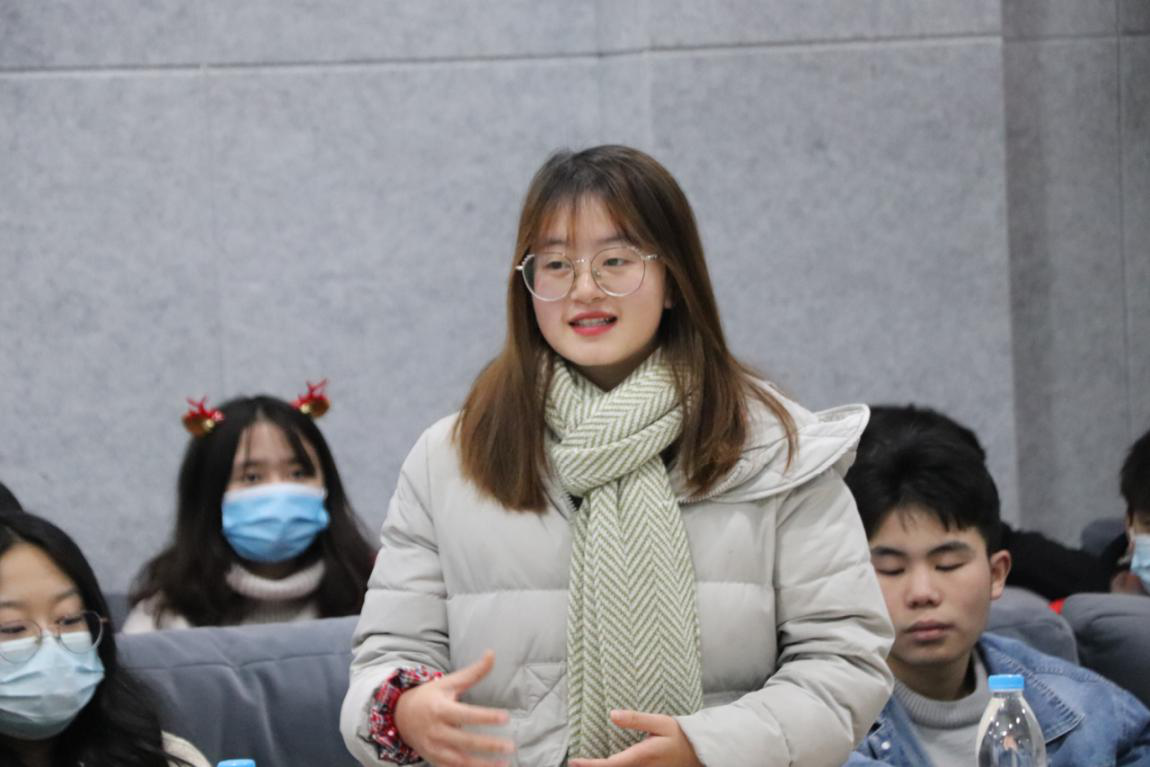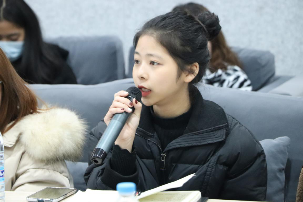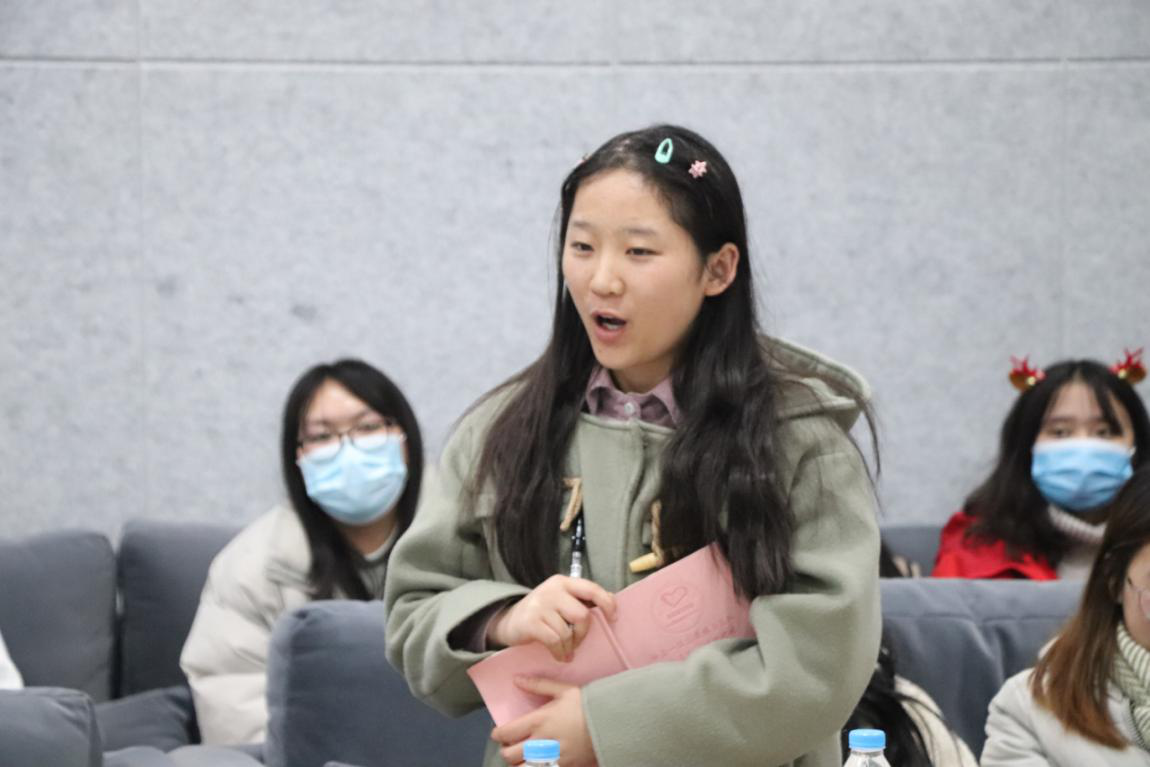 周婷婷学姐从“大学生金融素质教育项目、第五届中国青年志愿服务项目大赛、全国大学生免费午餐驿站”这三个方面为切入点将外出学习到的志愿知识毫无保留地分享给大家,让在场同学对志愿服务项目有了更深入的了解。周婷婷学姐在外出交流中表示“志合者,不以山海为远;求学者,不以地区为界。感谢完满,感谢志愿,感谢遇见”;