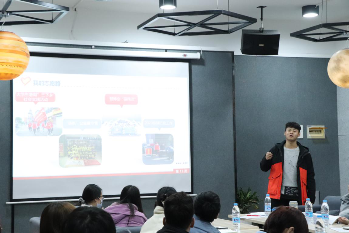袁义泰学长分享到“1200名志愿者经过3天专业的志愿服务培训旨在智博会顺利开展,虽然过程很累,但是很享受帮助他人的过程。”他从大型赛事服务经历,精彩分享了智博会中的趣事和收获,志愿服务带给他策划社团活动的灵感等。同样,他也经常参加多样式的志愿服务,不断参与各大志愿服务活动,并积极鼓励大家踊跃尝试不同的志愿服务;