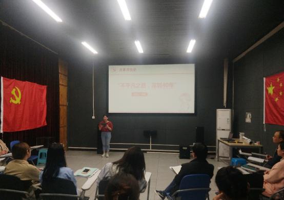 冯兰同学围绕“不平凡之路,深圳40年”这个主题,通过介绍深圳——中国第一个经济特区,它在最近四十多年的变化来阐述改革开放史。她介绍到,改革开放史是中国共产党推进社会主义制度自我完善和发展的实践史,中国共产党带领人民开启的一次伟大革命,实质是社会主义制度的自我完善和发展,目的是在新的历史条件下为人民谋幸福、为民族谋复兴。期间,她为大家播放了“深圳崛起之路“的视频,让大家看到了深圳从小渔村到大都市、从经济特区到中国特色社会主义先行示范区翻天覆地的变化。最后,她认为,作为远景学院的学生,要进一步解放思想,更新观念,悟透深圳经验的“脉络”和“穴位”,体悟深圳发展的内在逻辑。要学习深圳改革开放中“敢闯敢做,敢为人先”的精神,努力学好自己的专业知识,提升自身核心竞争力,充分发挥自身优势,认真守好岗位职责,在工作中当先锋,做表率。立足岗位,结合实际,勇于承担起实现学校学院跨越式发展的使命,踏实走好人生的每一步,用奋斗谱写人生靓丽的乐章。