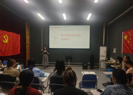 张入月同学的分享则以“新中国带来的巨变”为主题,通过介绍建国以来中国人民在衣、食、住、行四方面的变化以及陈凯歌、张艺谋的成长故事来阐述新中国史。她介绍到:新中国成立以来,党领导人民建设社会主义经济制度、政治制度、文化制度、法治制度,在每个历史阶段都有许多故事。党在探索中国特色社会主义伟大道路的历程中,经过探索、实践、再探索、再实践,总结、改革、再总结、再改革等,不断完善,不断解放和发展社会生产力,从实现站起来到富起来、强起来这一伟大的飞跃,其间有许多故事,每一个故事的精彩之处在于推动了中国崛起和复兴,不断朝着实现中国两个一百年目标而奋勇前进。分享的最后,她总结道:“雄关漫道真如铁,而今迈步从头越”。大家要从新中国史中汲取营养、汲取智慧,开启更为光辉的历程、创造更为伟大的奇迹。