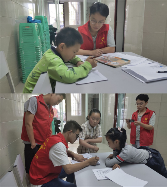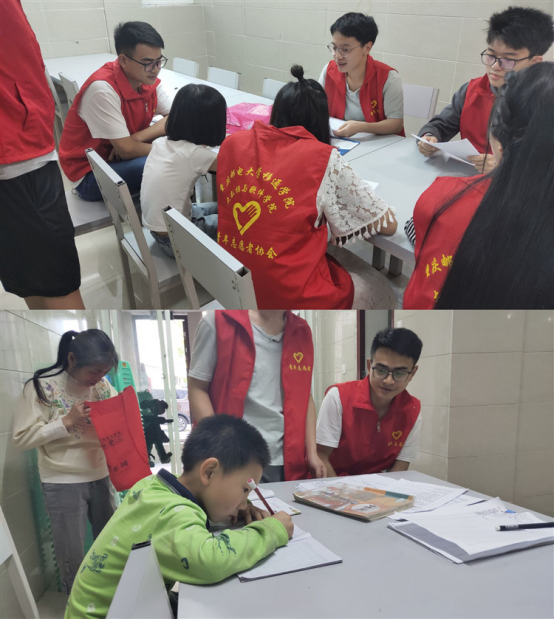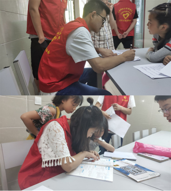 小朋友的到来,让志愿者们很快就进入了状态。大家开始为小朋友进行耐心的辅导,为他们指明每一个单词的拼读听,并点明每一个单词的有趣之处,引得孩子们哈哈大笑。这不仅让他们加深了对单词的印象,还让整个学习氛围变得生动起来。除了单词的学习,志愿者们还带来了朗朗上口的英文歌曲,他们一句一句的教小朋友,他们一起拍着手,打着节拍,脸上的笑容合着歌声,传入了他们每个人的心中,温暖了每个人。