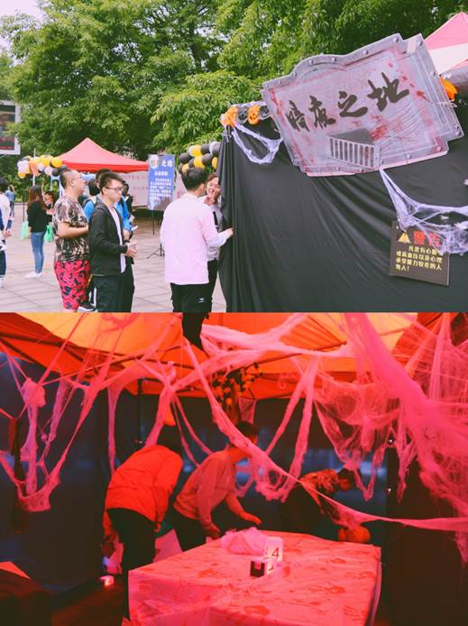 直击恐惧,无所畏惧。现场布置了名为“暗夜之地”的鬼屋,在具有极大视觉冲击的环境中,需要同学们正确的去完成任务。恐怖的音乐和环境,让同学们直接感受到“内在的恐惧”与“外在的恐惧”,成功完成任务才是无所畏惧的勇士