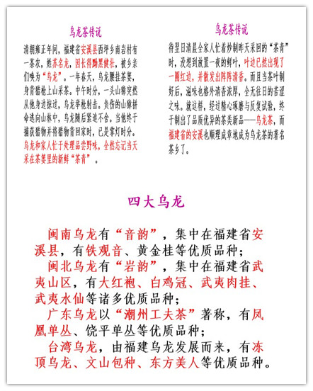 首先,陈老师对乌龙茶的传说进行了简要地概述,福建省一茶农,姓苏名龙,因长得黝黑健壮,因而被唤为“乌龙”。一天,虽已采茶完毕,但因打猎而忘记了背篓中的茶,待到第二天发觉时,茶青已经发生了变化,于是死马当活马医,用放了一夜的茶青制茶,没想到制成的茶品香气和滋味都更胜以往,这就是“乌龙茶”的由来。然后,陈老师对乌龙茶的分类进行了说明:乌龙茶可以分为四大类:闽南乌龙、闽北乌龙、广东乌龙和台湾乌龙。闽南乌龙以铁观音为代表,闽北乌龙以大红袍为代表,广东乌龙以凤凰单丛为代表,台湾乌龙以东方美人和冻顶乌龙为代表。陈老师希望通过对乌龙茶的相关知识的简单介绍,能让同学对乌龙茶有一定的认识,然后能选购出自己出心仪的乌龙茶。