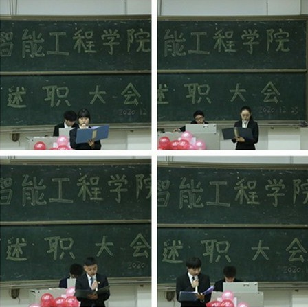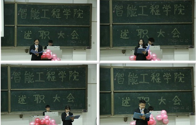 每一次述职,是对工作得失的反思,是对未来工作的展望。为保证团总支学生会青协各项工作有序开展,为来年工作更上一步台阶做好准备,12月25日下午4点,智能工程学院第三届第二任团总支学生会青协述职大会在3302准时展开。智能工程学院学工副院长李巧、团总支书记郭菲、学工办主任刘桃、各版块指导老师,以及全体主席团书记处成员,团总支学生会青协部长、干事出席本次会议。