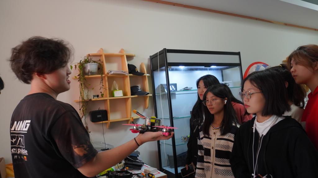 工坊建设一直是书院建设的核心工作之一,在每个书院都倡导建立“有影响”的工坊号召下,廊桥书院在4年艰苦反复探索的书院工作中,结合其空间“优势”,逐步从学生入手,“社区服务+个人成长”的模式下从广泛累积的学生里找到那些“有想法、想改变”的人,在连续两年的“联动融合”背景下,推动工坊初创工作,从2019年5月首个军事兴趣工坊建立到2021年5月爱飞行工作室成立,8个工坊在廊桥1号楼的群落性聚集逐步形成了工坊“一条街”的雏形。