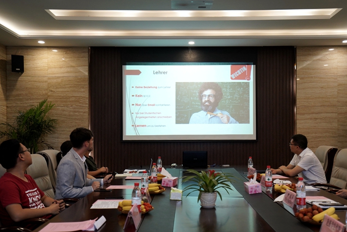 德语教师代表吕巍老师谈到;“德国的教学十分严格,同学们要做好心理准备,也只有更严格的教育才能使你们更加优秀,要注意国内与国外的生活细节存在着差异,例如:下载盗版电影,游戏会面临高额的罚金”。接着德语外教李成老师是土生土长的德国人,从他的视角为同学们讲解了德国的生活与专业学习,他结合自己成长的环境、接受的教育及德国人文为同学们上了一堂有趣而生动的一课。最后,老师们都送上真挚的祝福,希望学子们都能够完成自己的梦想。