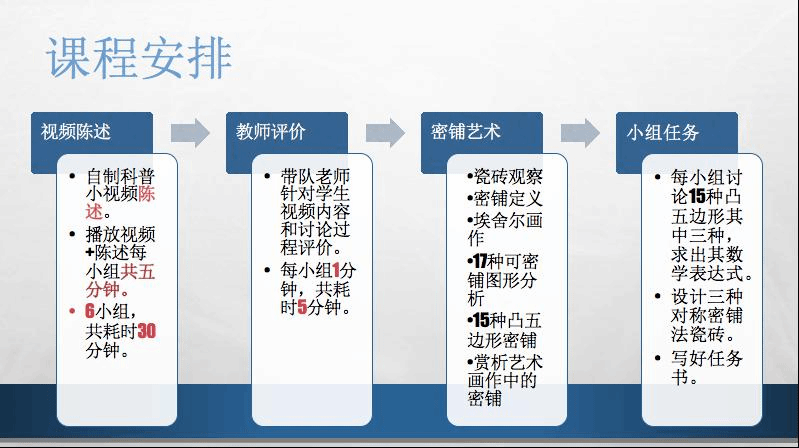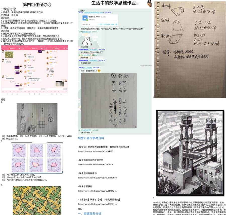 为了转变学生对数学类课程的畏难情绪,提升学生自主研究和学习能力,任课教师结合互联网时代学生的喜好特点,通过指导学生拍摄关于数学类知识的科普视频、用密铺知识进行瓷砖铺设、用分形几何知识欣赏艺术画作等小组任务,极大地调动了学生的参与兴趣。不仅引导学生将数学与生活中的各个方面联系起来,同时也培养了学生统筹、策划、合作、艺术鉴赏、批判性思维的能力。