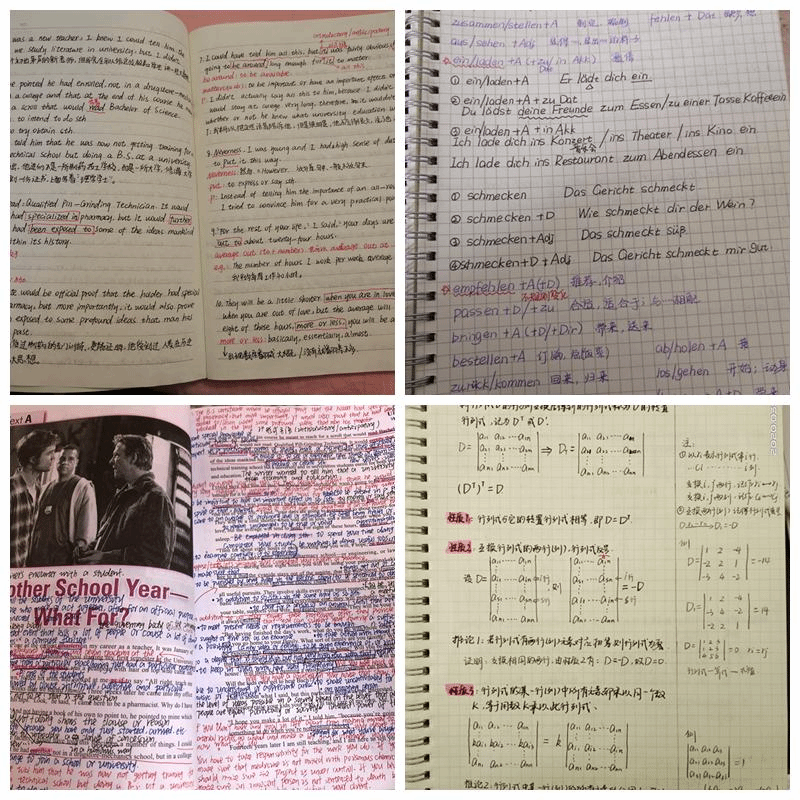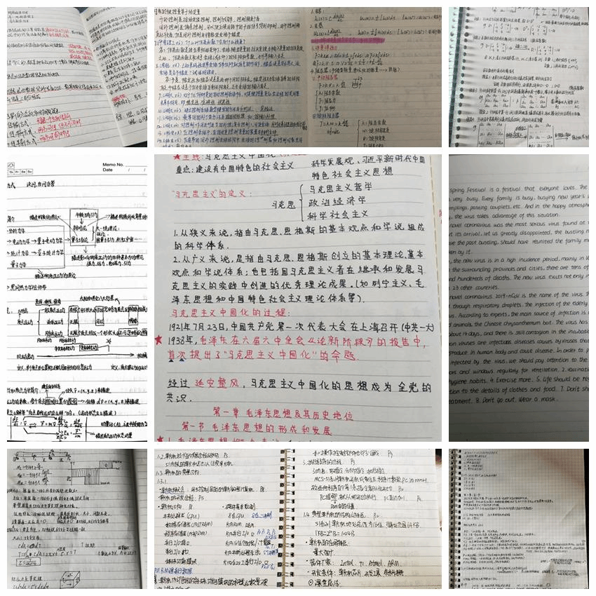 此次征集到的网课笔记各有特色,有直接记在书本上的,有记在各式各样笔记本上的;字迹颜色有黑白的,有彩色的;记录形式有文字的,有表格的……无论是什么科目、什么类别的笔记,每一个字符能都看出同学们对知识的渴望追求,每一页笔记都透露出同学们对网课的认真对待,对屏幕前授课老师的尊敬。