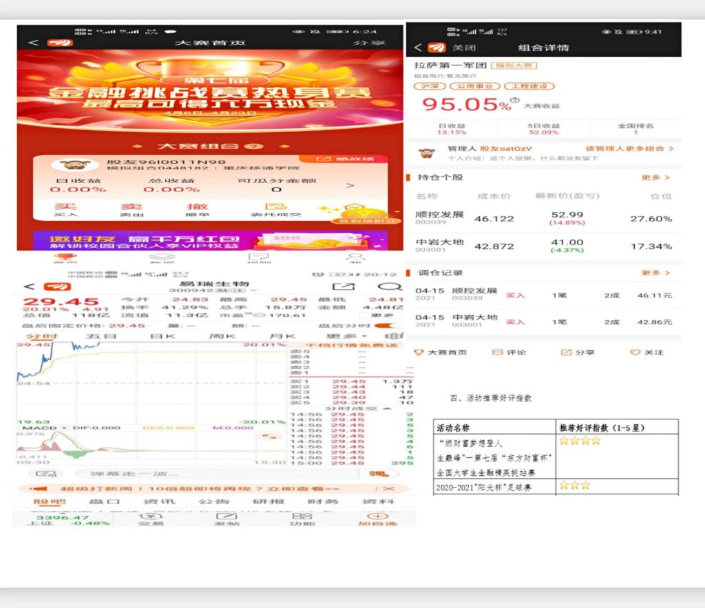 本月观察活动具象性评分中,由淬炼商学院团总支组织的“燃财富梦想登人生峰"一第七届“东方财富杯"全国大学生金融精英挑战赛活动获得评分90以上,推荐指数四星。观察团成员认为:活动很有意义,能做到理论和实践相结合,进一步培养大家的投产能力,树立金融风险意识,丰富大学生的课余生活;工作人员态度较好,做到有达必问,多维开展宣传;结合商科教育,培养移通学子商科思维,全国类赛事,含金量高为大家提供了良好的平台。通过现场调研,因活动限于线上,前期进展较慢,线上参与体验有限,不能直白体现自己情绪,有部分同学表示,希望线上参与的活动,可以有线下交流机会,建议组织方组织大家线下见面相互交流意见等。
