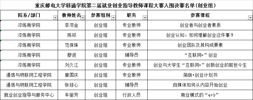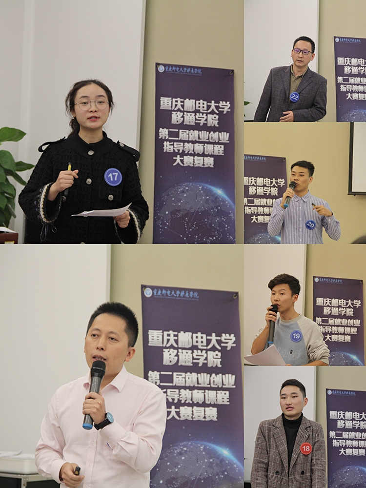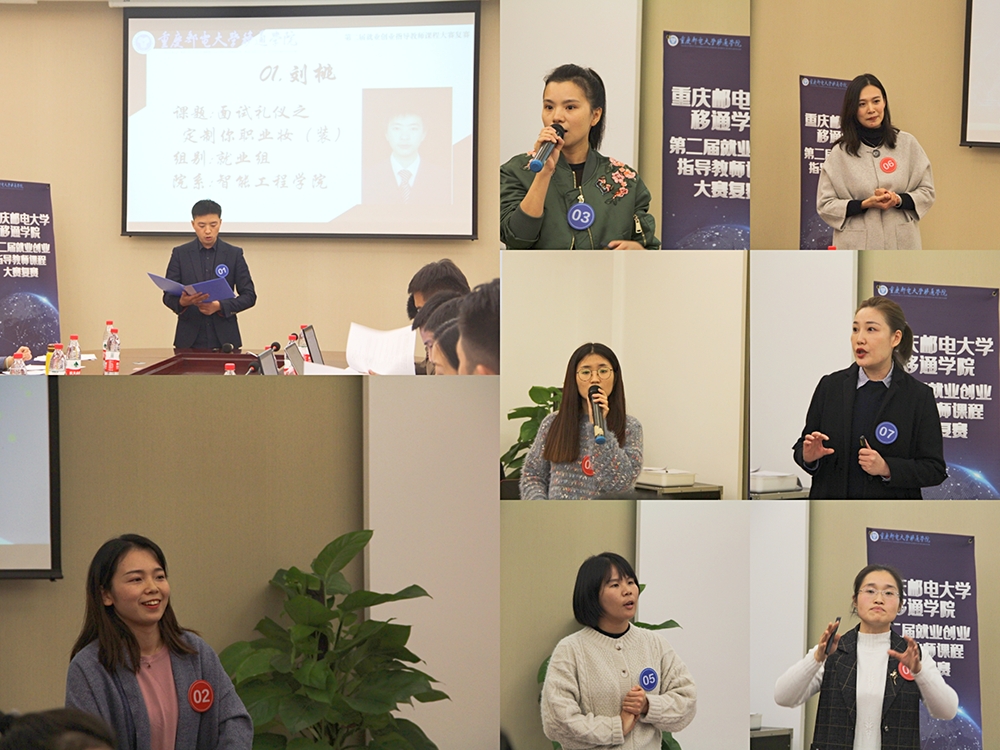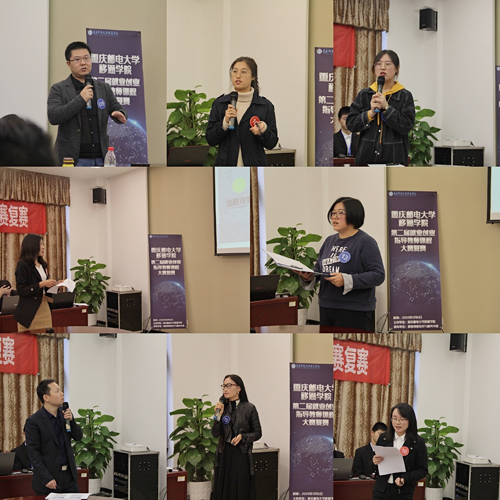 为进一步加强就业创业指导课程建设,切实提高就业创业指导教师队伍的职业化、专业化、专家化水平。由重庆邮电大学移通学院主办,就业创业指导与服务中心和教务处承办的第二届就业创业指导教师课程大赛复赛于2019年11月6日14:00在行政楼A栋107会议室举行。