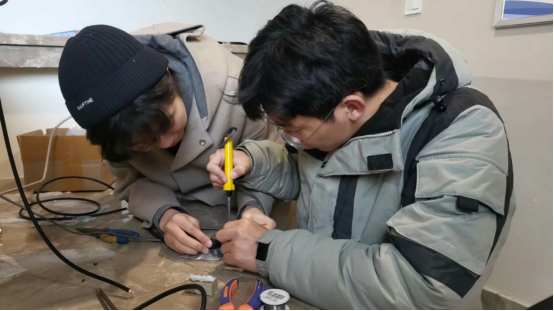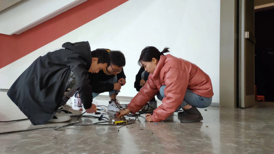 第一步:拆线,剥丝,装插头。新成员从最初连螺丝刀都不会拿,到最后学会了改线这无疑是一个巨大的进步。在剧管小伙伴们娴熟的操作中,一根根电源线、信号连接线就这样“出炉”了。
