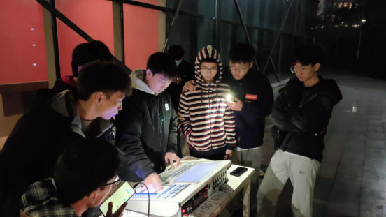 不经历风霜,怎得梅花香。天下之事常成于困约,而败于奢靡。当保存下最后一道光束的CUE,经过数次的演练和拍摄,随着指导老师一声“收工”,意味着历时六天的灯光秀创作圆满结束!