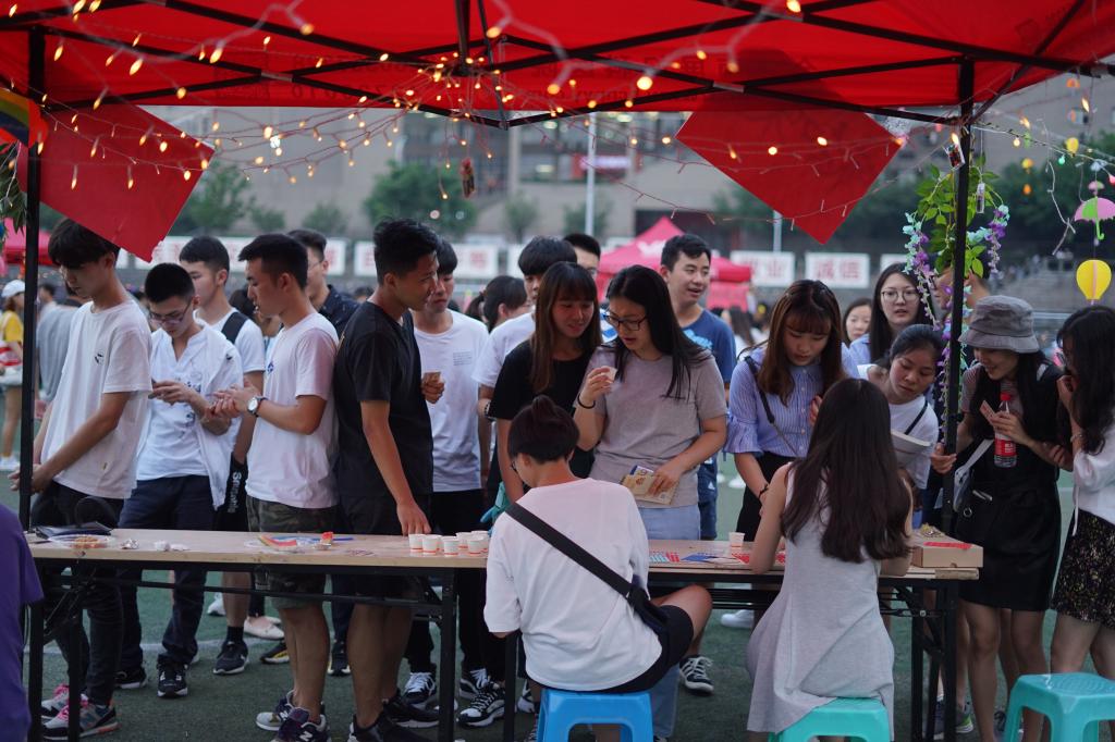 从看图猜电影,到速算加减法,再到风靡网络的“跳一跳”小游戏真人挑战,我们在狂欢夜中点燃激情,在激情中共享社团文化的魅力!不必为时光流逝而逝者如斯,不必为追逐青春而失去定格,不必为拥抱梦想而苦苦徘徊。电影协会、家教协会、美食协会、花样跳绳协会、农耕协会、摄影协会以各自特色设立的趣味挑战小游戏,让同学们在游戏中赚取积分,在幸运中抽得奖品。