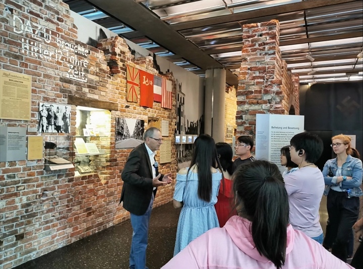 我们参观的第一个展馆和二战的历史密切相关。讲解员带领我们参观了一些二战时期战时德国的图片和文物,也看到了一些被纳粹迫害的人员的照片。并且在讲解中,他的一句话让我印象深刻,大致意思是我们要做的是要避免这一切再次发生。尤其是展览中也悬挂着一张战后德国总理下跪的照片,让我记忆犹新。联想到二战时期我国的历史,我深感和平生活来之不易,我们应该珍惜。