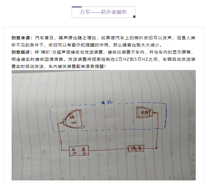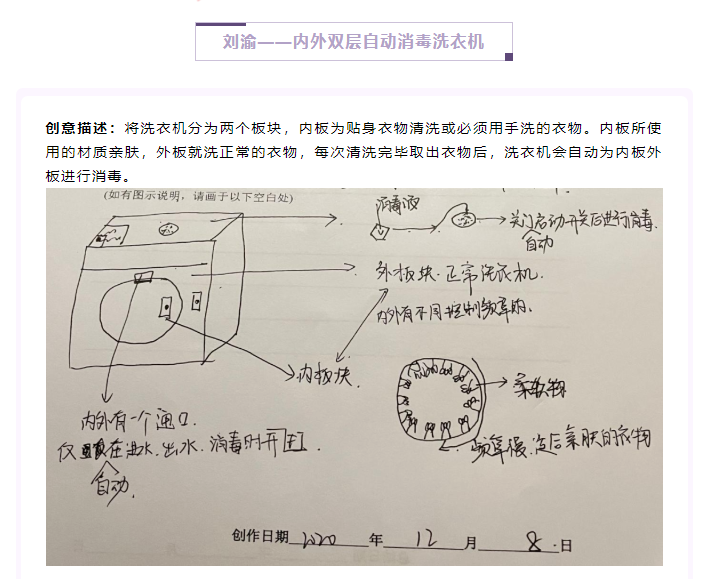 创意不是设计师的专利,人人都可以将心中的创意想法转化为现实。活动以鼓励学生“每日一设想,每日一观察,每日一创新”为目的,要求参赛选手在一个月(连续30天)时间内,每日记录一个自己的创新设想或者创意点子,需要图文兼备。该创新设想没有范围限制,可以是身边常见的事物,也可以是天马行空关于未来的幻想;无形式限制,既可以是灵光一现的金点子,也可以是深思熟虑的新方案。记录思维的痕迹,播下创新的种子,开拓想象的空间。