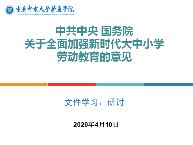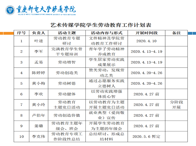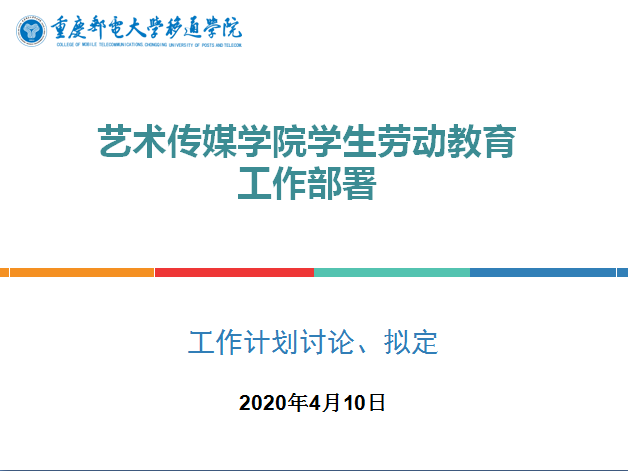 为进一步发挥学校在劳动教育中的主导作用,切实履行好学生劳动教育主体责任,引导学生牢固树立劳动最光荣、劳动最崇高、劳动最伟大、劳动最美丽的观念;体会劳动创造美好生活,体认劳动不分贵贱,热爱劳动,尊重普通劳动者,培养勤俭、奋斗、创新、奉献的劳动精神;具备生存发展需要的基本劳动能力,形成良好劳动习惯。4月10日上午,艺术传媒学院召开了劳动教育专题研讨会。艺术传媒学院副院长李克伟,及全体辅导员在共同学习最新劳动教育相关精神的同时,就学院拟于4月集中开展的劳动教育工作进行讨论、交流。