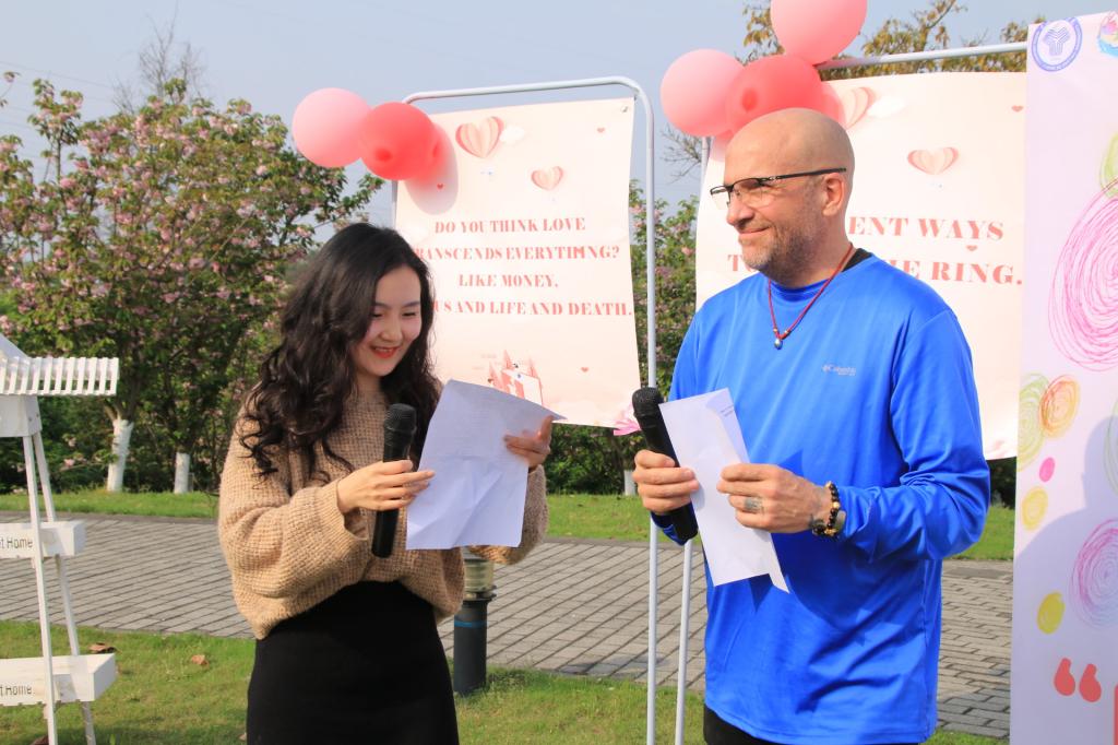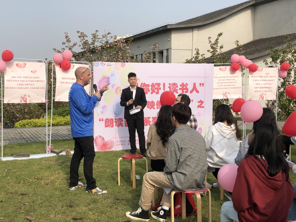 3月25日下午,春光明媚,草长莺飞。首期朗读日活动邀请到美国外教Peter、德国外教Elias以及外国语学院熊斌彬老师作为领读人与同学们共同参与。来自不同的国家,有着不同的文化背景和生活阅历,对“爱情”的理解就会不同。