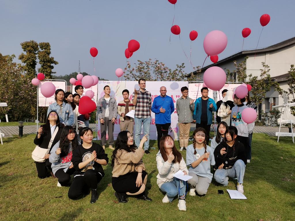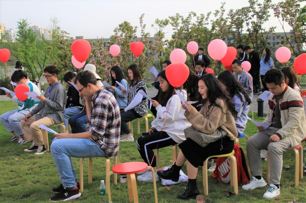 或许是诗歌本身的迷人,也或许是听完来自不同国家不同阅历的老师们以及可爱的同学们的分享,带着对爱的理解,和着柔美的音乐,在落英缤纷的行者公园,同学们和老师们集体朗读了《春逝》这首诗歌。活动最后,大家集体围成心形,共同放飞了手中的气球,将春日美好洒满天际。