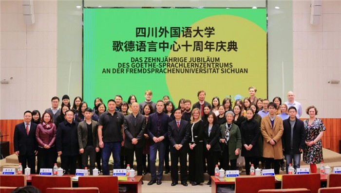 三月底,四川外国语大学歌德语言中心成立十周年系列庆祝活动在川外展开,我校中德学院受邀参加,德语教研室主任张洋受尹浩亮院长的委托出席并参加了系列活动。出席该活动的还有四川外国语大学校长李克勇教授、副校长李小川教授,歌德学院北京分院副院长杨士鹏(Jan Sprenger)先生、德国驻成都总领事馆副领事罗美兰(Melanie Freund)女士、四川外国语大学德语系主任李大雪教授,以及中国区其他八所歌德语言中心的中方主任出席了此次庆典。参加盛会的还有重庆兄弟院校的领导和教师代表,歌德语言中心的全体教职工,以及川外德语系教师和学生代表。