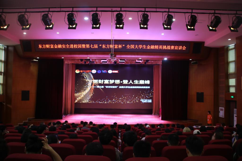 5月11日,东方财富金融安全进校园暨第七届“东方财富杯”全国大学生金融精英挑战赛宣讲在我校下里巴人剧场顺利举行。有幸邀请到东方财富证券重庆新南路营业部总经理—唐涛、东方财富证券成都分公司零售业务管理总监—李天常、东方财富证券重庆青年路总经理-杜力、淬炼·国际商学院院长-张平、教学副院长-曾璐、学工副院长-梁少锋、成都分公司零售部-马玉帅、成都分公司零售部-姚俊、淬炼·国际商学院团总支书记-刘薇唯、学工办主任-李伟光、校园社团活动板块指导老师-黄新燕出席本次活动。我校近400名同学参加本次活动,并与在场讲师展开近距离互动。